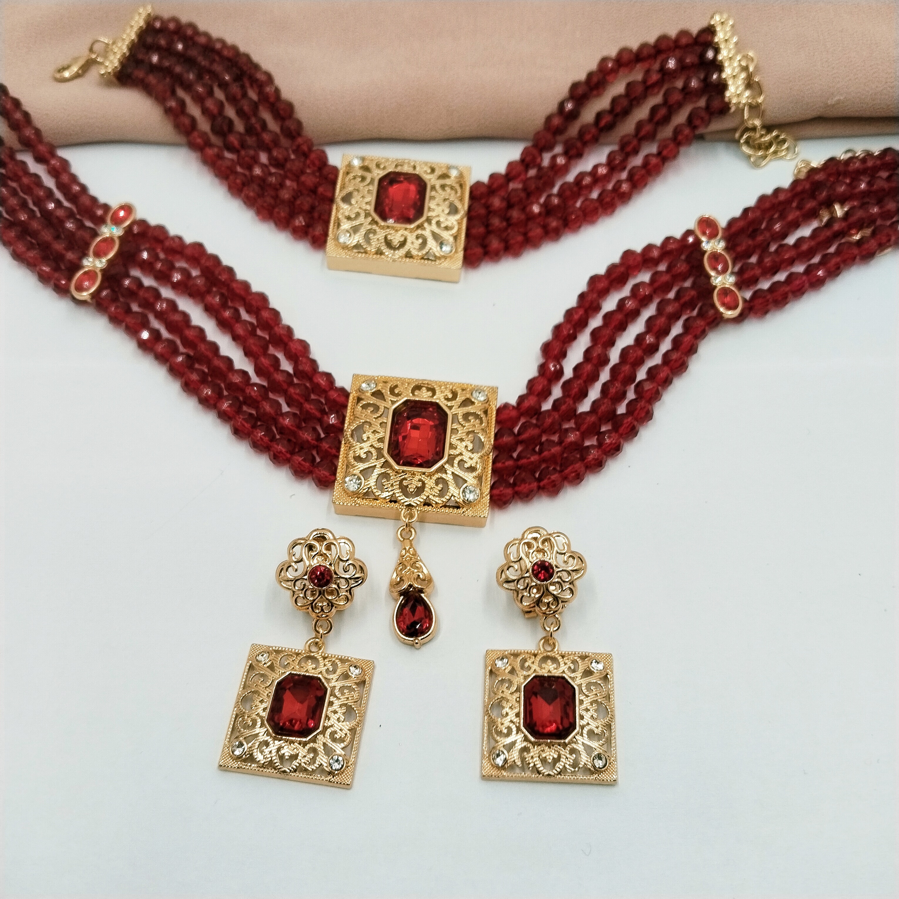 Parure Ras de Cou Blanche avec Perle Rouge 4 pièces